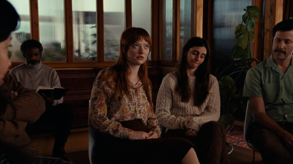 In the shocking crime story of Going Sane, the radical methods of now-disgraced psychotherapists Richard “Riggs” Corriere and Joseph Hart trap patients of the Center for Feeling Therapy in a lifestyle that begins to resemble a cult. Wanting to anonymize the Center survivors who granted him interviews, director Joey Izzo had actors lip-sync recordings of their voices while reenacting a ’70s group therapy session.