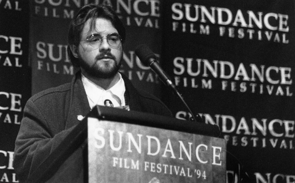 Smith at the 1994 Sundance Film Festival Awards Night Ceremony, where he won the Filmmaker Trophy Dramatic award for Clerks.