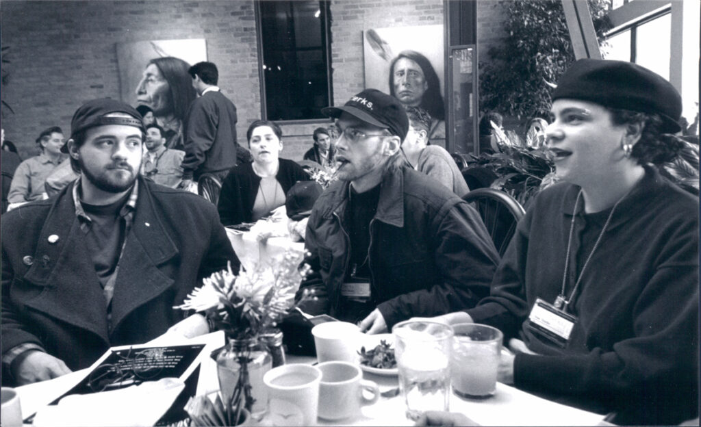 Smith and Mosier (far right), take a breather with other 1994 Sundance Film Festival attendees.