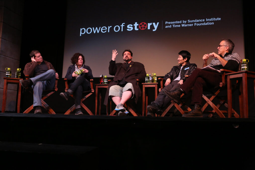 Smith (center) joins filmmakers Boaz Yakin, Rose Troche, Gregg Araki, and moderator John Cooper for the Power of Story: The Class of ’94 discussion where the Sundance-supported filmmakers discussed dynamic work at the 2014 Sundance Film Festival.