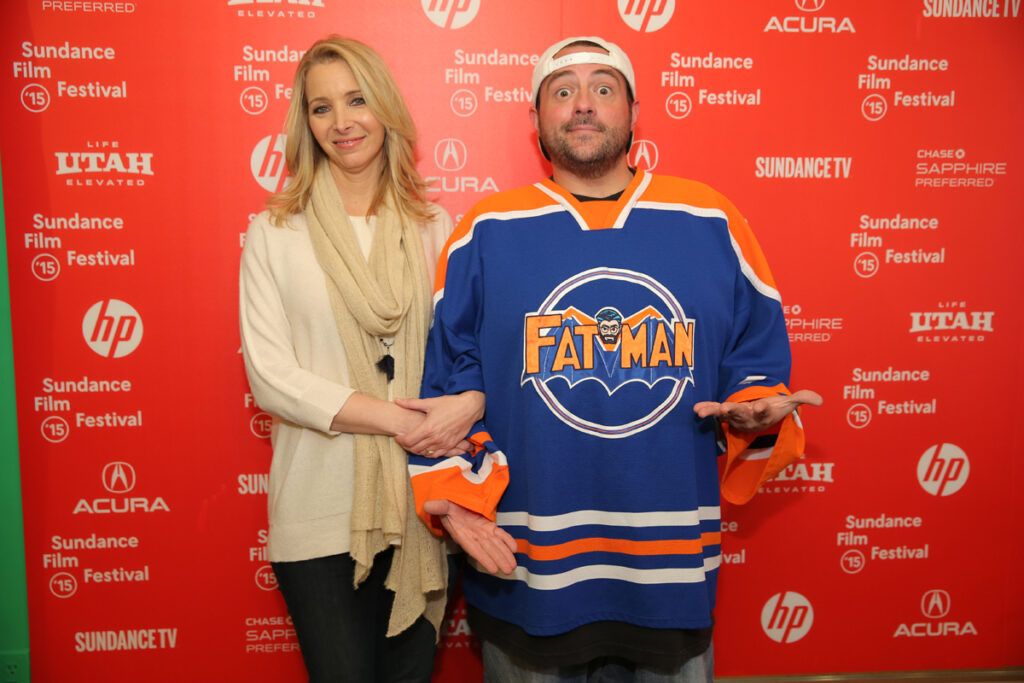 Lisa Kudrow and Smith pose for a photo ahead of Kevin Pollak’s Misery Loves Comedy, which premiered at the 2015 Sundance Film Festival.