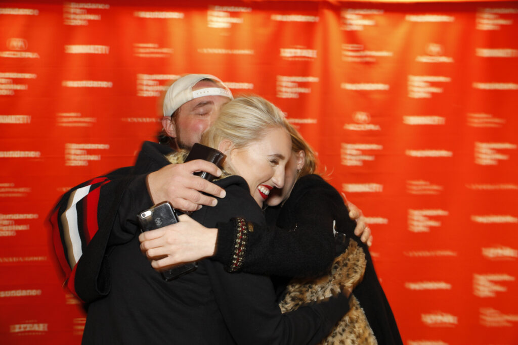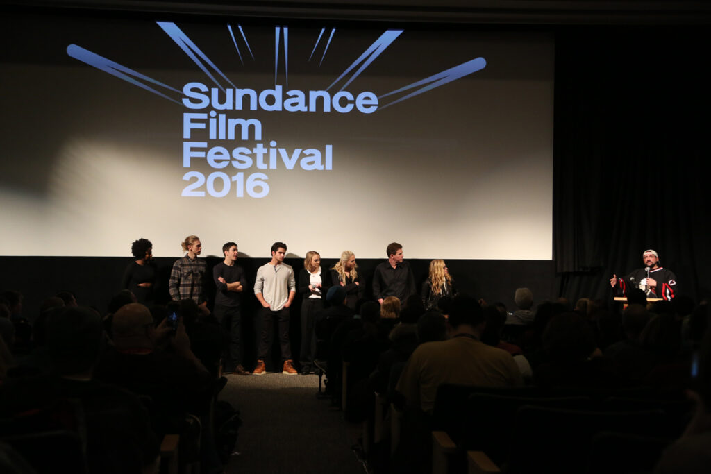 Smith is joined by the cast and crew of Yoga Hosers at the film’s premiere during the 2016 Sundance Film Festival.