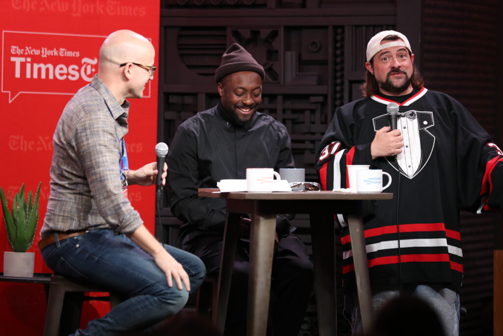 Smith makes Will.i.am chuckle during the Times Talks discussion at our Cinema Café during the 2018 Sundance Film Festival.