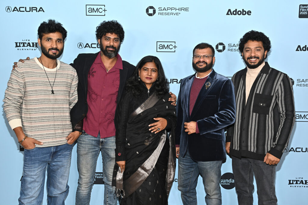 (L–R) Suraaj Suman, Rohan Parashuram Kanawade, Jayshri Jagtap, Neeraj Churi, and Bhushaan Manoj attend the premiere of “Sabar Bonda (Cactus Pears)” at the 2025 Sundance Film Festival at Egyptian Theatre on January 26, 2025, in Park City, UT. (Photo by Andrew H. Walker/Shutterstock for Sundance Film Festival)